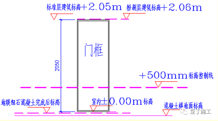 5.4 入户门洞口粉刷应充分考虑楼地面厚度以及门框高度,门框顶部空隙按10mm留设,避免门头空隙过大
