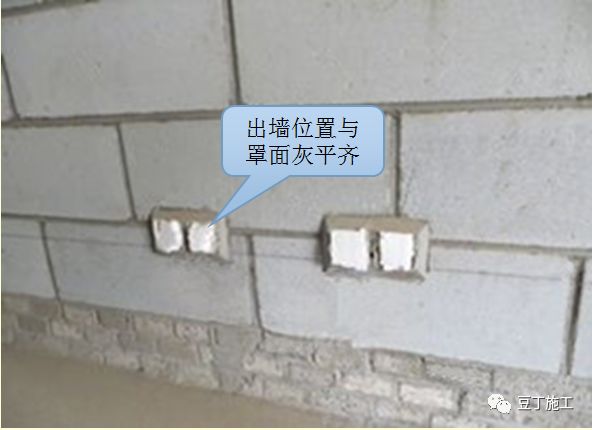 6.6 依据灰饼拉线控制线盒、开关箱出墙位置,要求与罩面灰平齐。