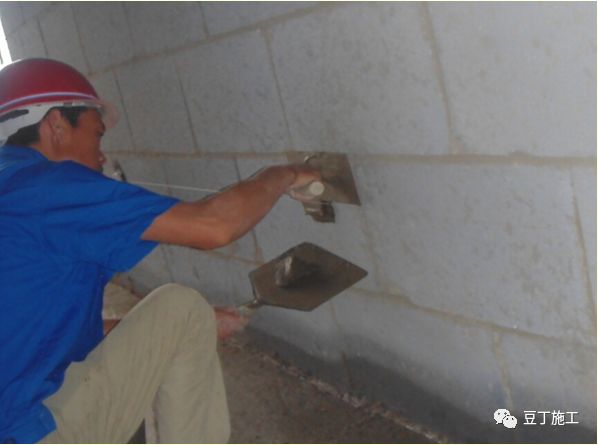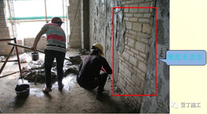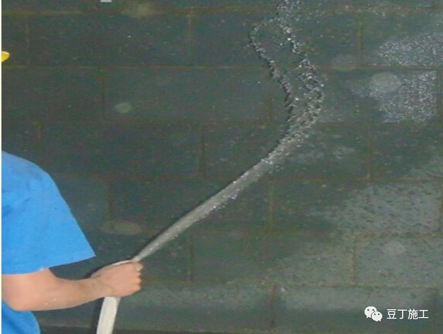 4)夏天天气炎热,水分蒸发快,对吸水较快的砌体墙面可采用软毛滚筒蘸水湿润墙面。