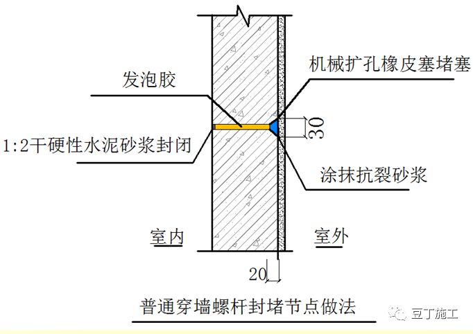 6.4将错台、灰浆不饱满的砌缝,用胶灰或细石混凝土填塞密实,±0.00以上有外保温的混凝土结构外墙穿墙对拉螺杆孔洞采用橡胶塞封堵,橡皮塞凹进外墙面3-5mm,涂抹抗裂砂浆。