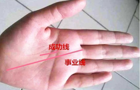 从中指延伸下来的是事业线,若是事业线旁边有与之平行的小直线,就是成功线,手上有成功线的人,一般性格开朗,乐于接受别人的意见,因此往往能得到别人的指教和帮助,在事业上无论是贵人还是靠山都不会欠缺。