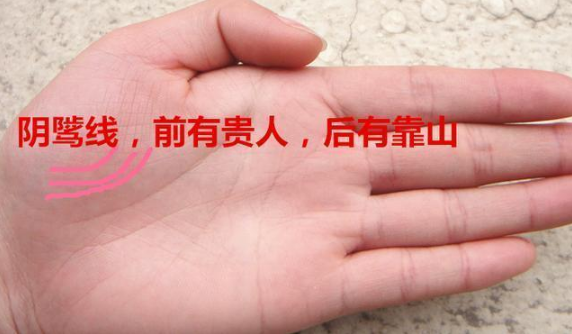阴骘线不仅仅脸上有,手上也有。手上的阴骘线位置与贵人纹一样,也可以说是贵人纹的一种强势的变化,当贵人纹有三条,十分清晰的时候就成了阴骘线。手相阴骘线说明你前世积下很多功德,那些上一世受恩于你的人,今世会来报恩,因此,今生你会很有贵人缘。即便是刚刚认识的朋友也会莫名其妙地信任你,为你赴汤蹈火。手相阴骘线之人是最典型的前有贵人,后有靠山的有福之人。