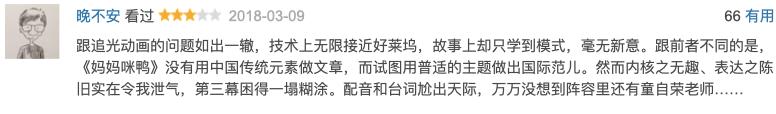 然而,在台词处理方面,《妈妈咪鸭》针对国内观众选用了国内社交平台上年轻人频繁运用的网络流行语,也是这部春节档上映、号称“合家欢”的电影最为人诟病的地方:不适合儿童观看。