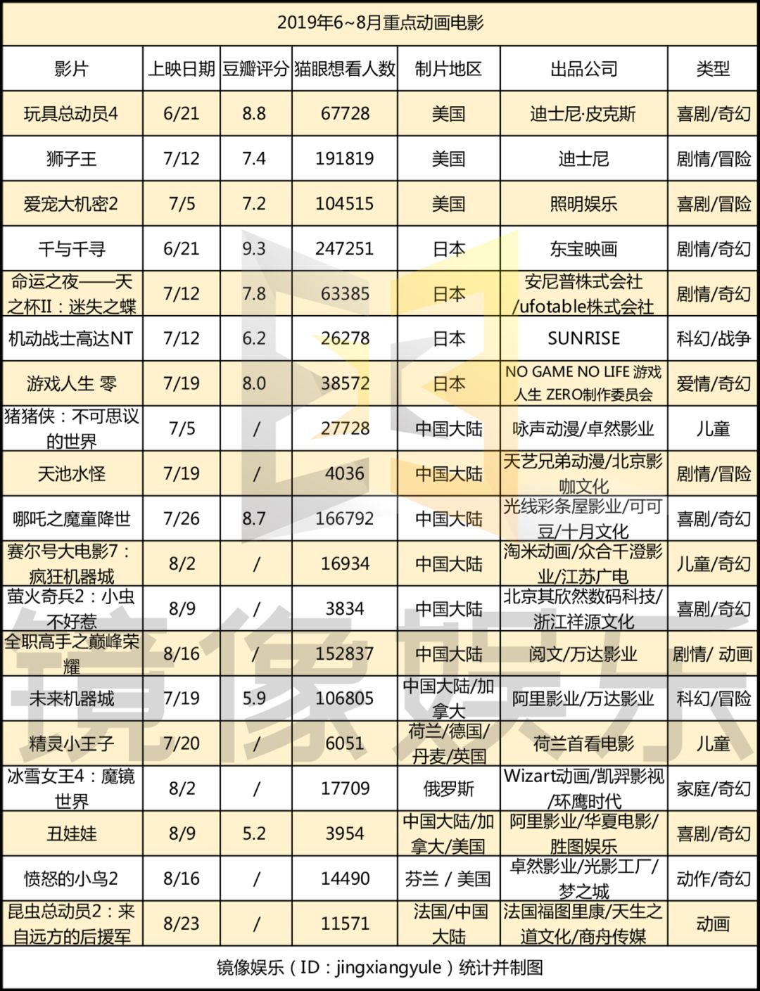 据镜像娱乐(ID:jingxiangyule)统计,2019年6月至8月的重点动画电影中,包括中外合作项目在内,国产动画电影所占比重近53%,占据半壁江山。