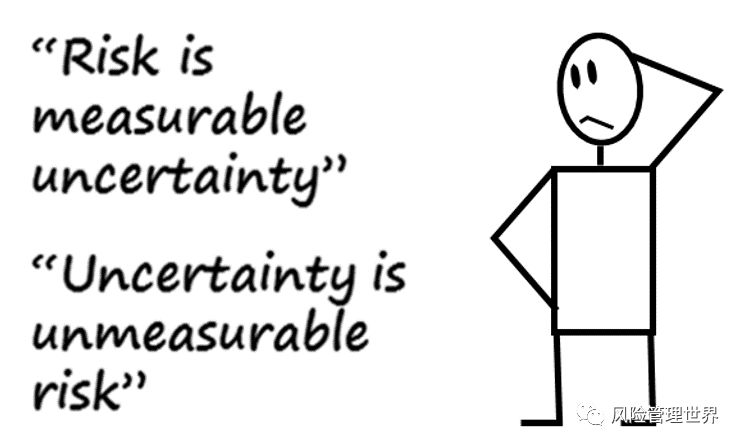 这样的分类和Frank Knight在其著作《风险、不确定性和利润》中的分类是不同的,他认为风险是可度量的不确定性,真正的不确定性是那些不可度量的不确定性。