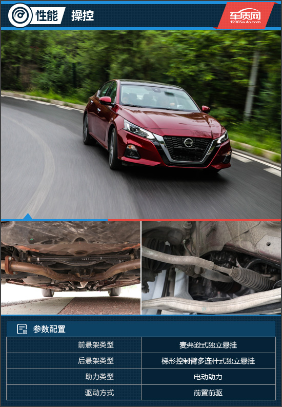 第七代天籁采用了前麦弗逊后梯形控制臂多连杆的悬架组合,不仅能提供良好的支撑还能提供更精准的转向,在面对坑洼路面或减速带时都能过滤掉多余的震动,让车内更加安逸且不会出现车身松散的感觉,另外柔软的座椅也起到了过滤震动的作用。