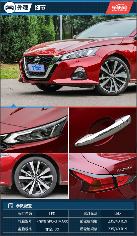 细节方面,新车车头相比老款更加低矮,配合回旋镖式LED前大灯,使得第七代天籁极具识别度。本次试驾的顶配版本还配有无钥匙进入功能,让出入车辆变得更加便利。轮胎方面,试驾车型采用邓禄普sport maxx系列,该轮胎均有耐热度高,干湿抓地力强、排水性好等特点。尾灯造型与前大灯遥相呼应,点亮效果出众。