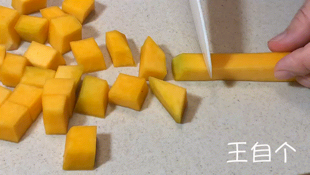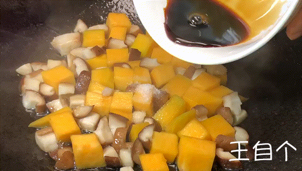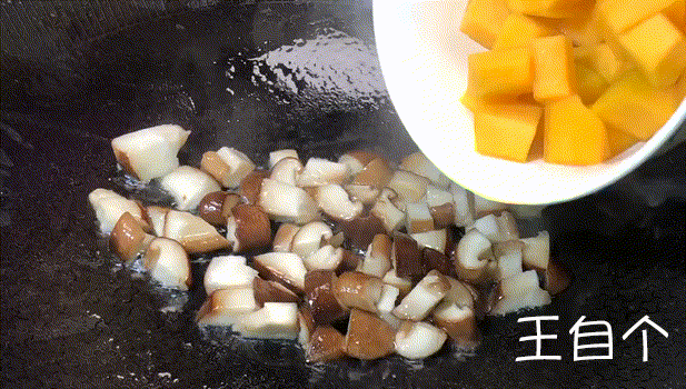 1.将南瓜去皮,之后切成块状;香菇洗净切成小丁。