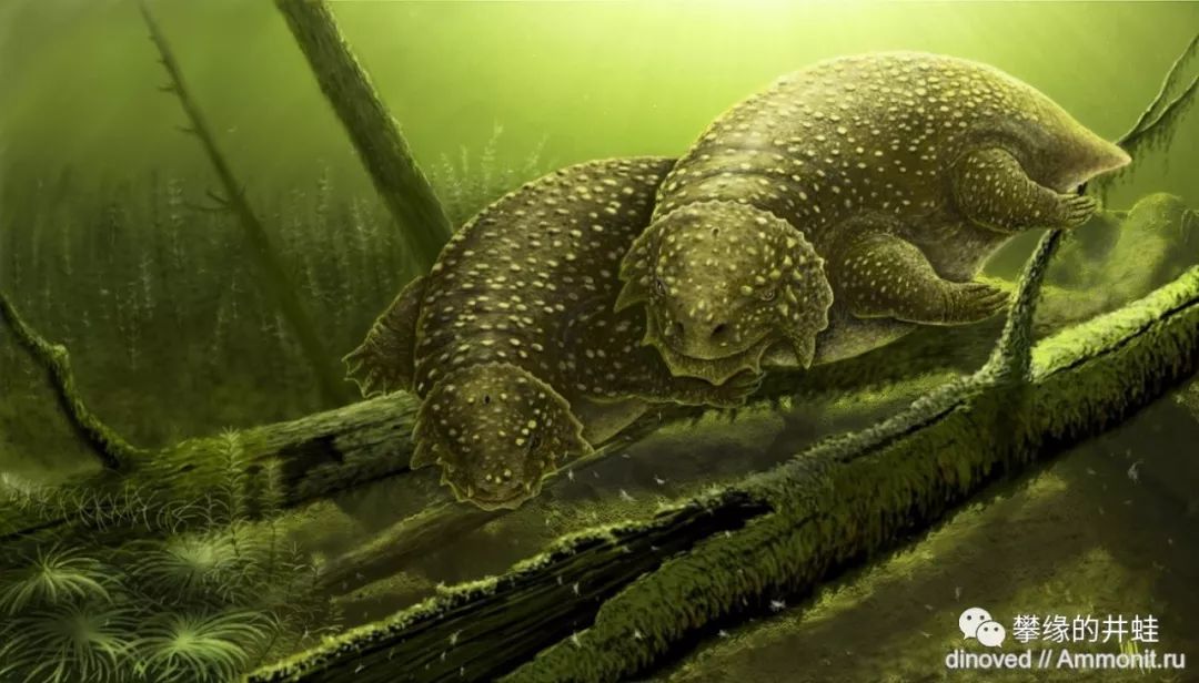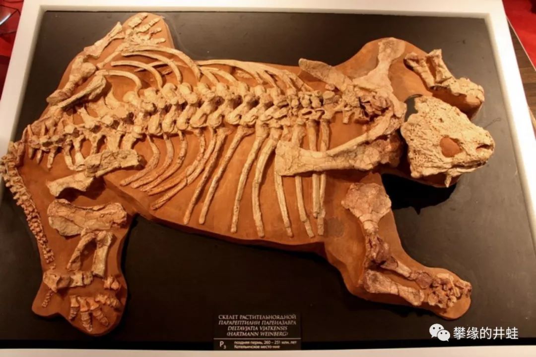 一具产自俄罗斯的Deltavjatia vjatkensis完整化石。图片来源自网络。在它的腹腔中没有发现研磨用的石块(胃石,Gastrolith)。