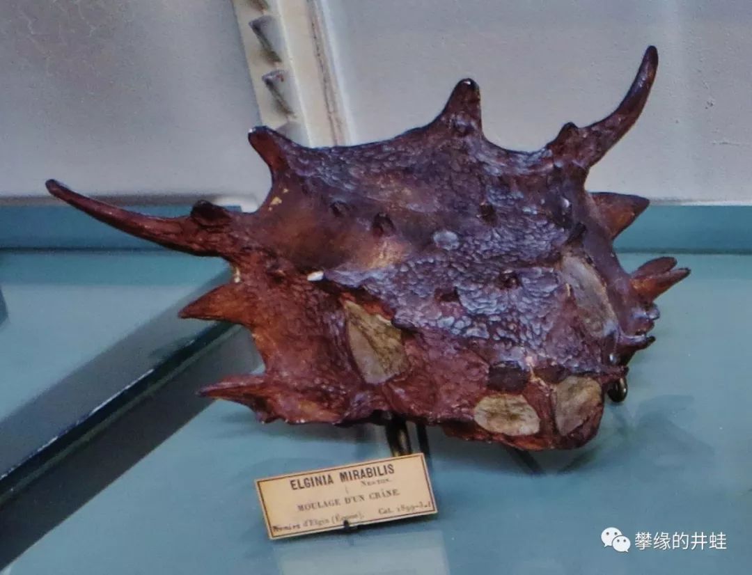 内蒙古发现的一个残破的头骨标本,被确认为埃尔金龙新种:吴氏埃尔金龙(Elginia wuyongae)。图片来源自[13]。