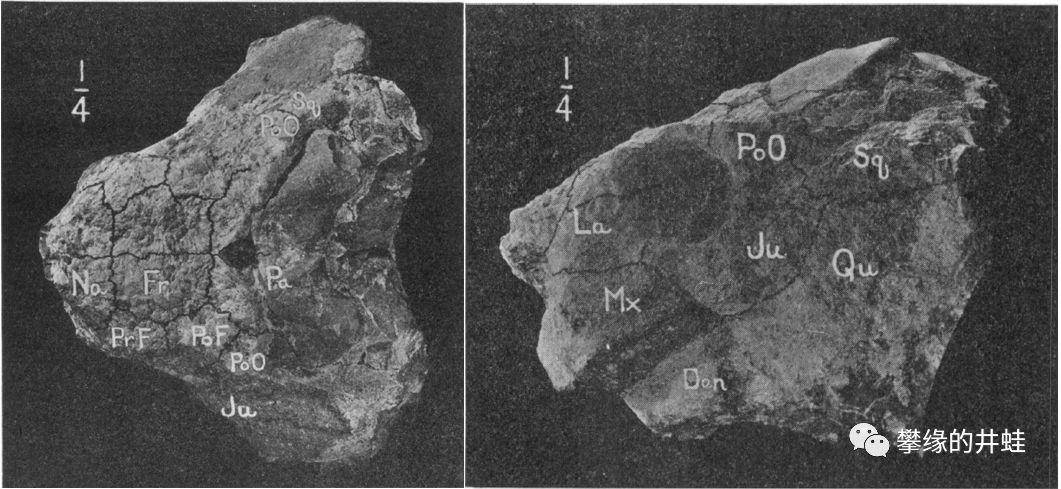 南非卡鲁盆地发现的花齿龙Anthodon gregoryi模式标本化石,头骨上没有太多的装饰。图片来源自[6]。