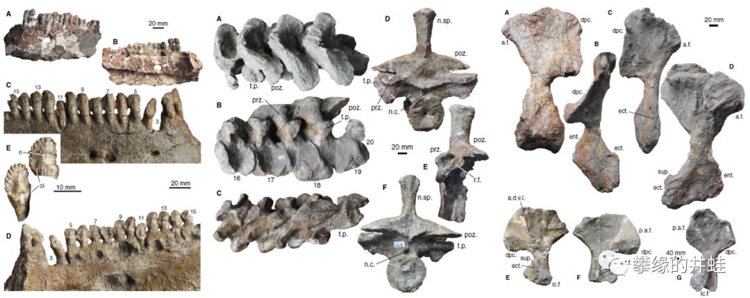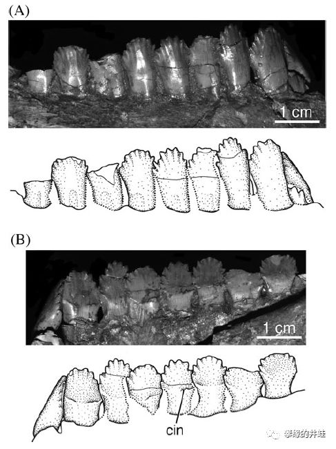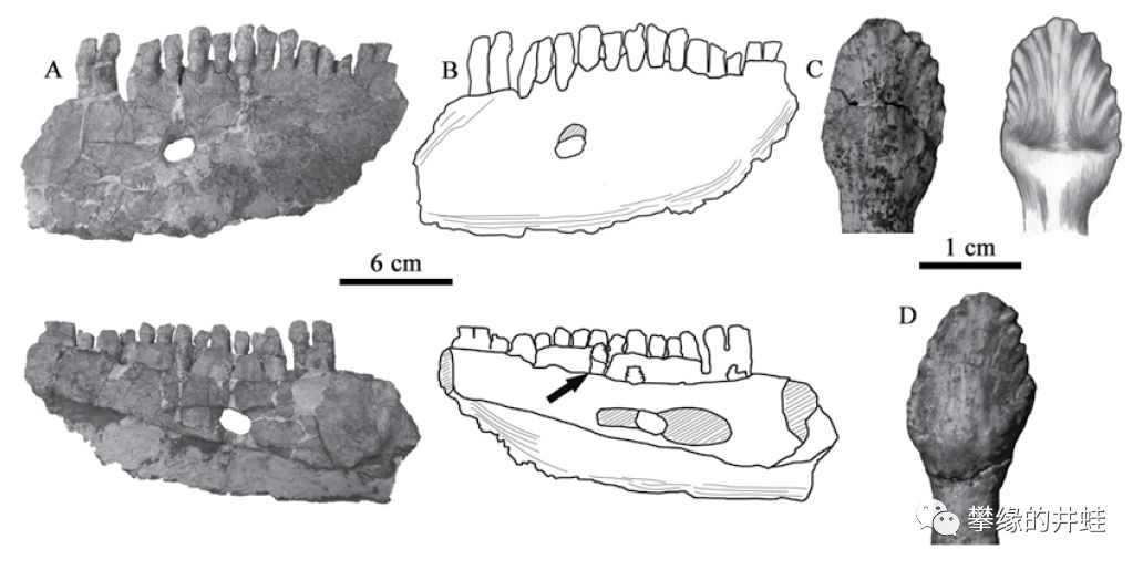 山西发现的柳林黄河龙Huanghesaurus liulinensis下颌和牙齿化石。图片来源自[14] 。