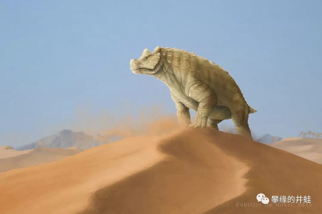 艾尔加奈角龙头部复原图。©Marc Boulay。埃尔加奈盆地也是一个化石圣地,很多这里发现的古生物都以此命名,三叠纪篇很快会写到。