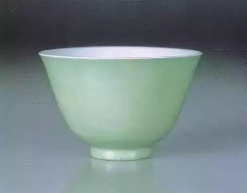文物描述:撇口,深弧壁,矮圈足。器内白釉无纹,外壁施浅绿釉,釉色嫩绿淡雅,釉面满布细碎开片。底青花书「大清雍正年制」六字二行楷款,外加双圈。
