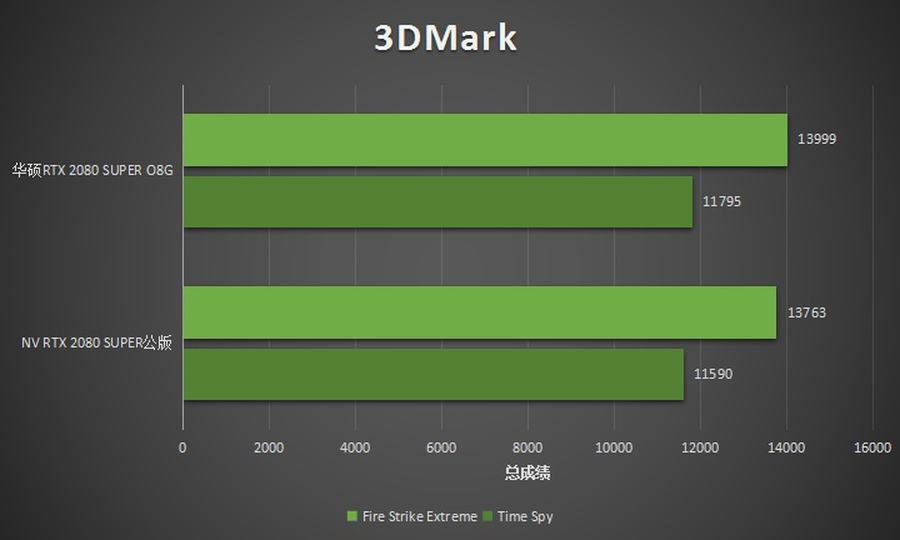 ROG-STRIX-RTX2080S-A8G-GAMING相比Founders Edition版本,Boost频率提升了75MHz。根据我们泡泡网的实测的3DMark成绩来看,ROG-STRIX-RTX2080S-A8G-GAMING约有1.5%的游戏性能提升。