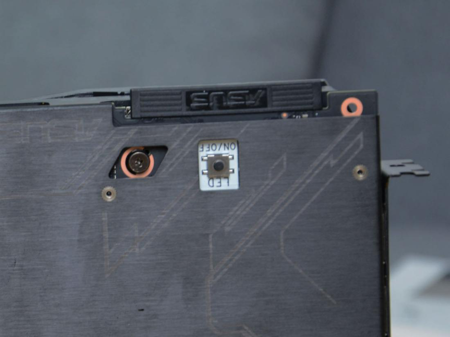 当然,对于那些不喜欢“光污染”的玩家们来说,ROG-STRIX-RTX2080S-O8G-GAMING在设计上也非常的人性化,专门设计了隐蔽模式按键,位于显卡PCB背面。玩家仅需轻轻一按,即可关闭RGB灯效,让显卡在机箱里低调地运行,帮助玩家们畅快游戏。