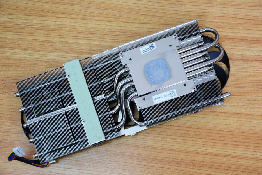 此外,它的散热器金属主题部分采用了6根热管+镜面直触GPU设计、并辅以超大散热片,规格非常豪华。其中,散热器底座专有的镜面直触GPU设计,能够让散热器底座更好地与GPU接触,进而为GPU提供更高效的散热性能。