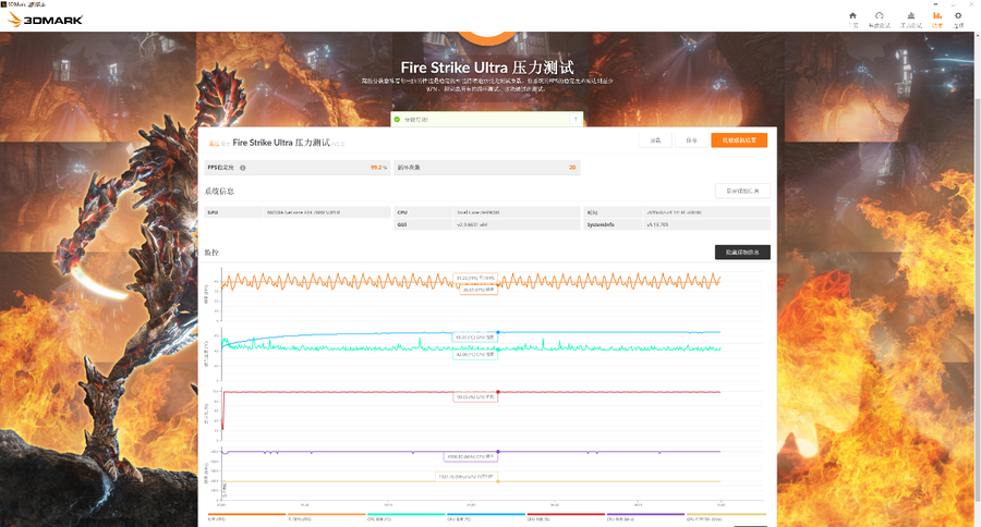 在Fire Strike Ultra压力测试中,这款显卡的散热表现非常好,顺利的完成了20轮压力测试。根据软件自带的监控显示,它的GPU温度在拷机过程中最终维持在了65℃左右,同时GPU Boost频率也能长久保持在1937MHz以上,可长时间完成高性能输出。显而易见,这款显卡的散热器确实非常的给力。