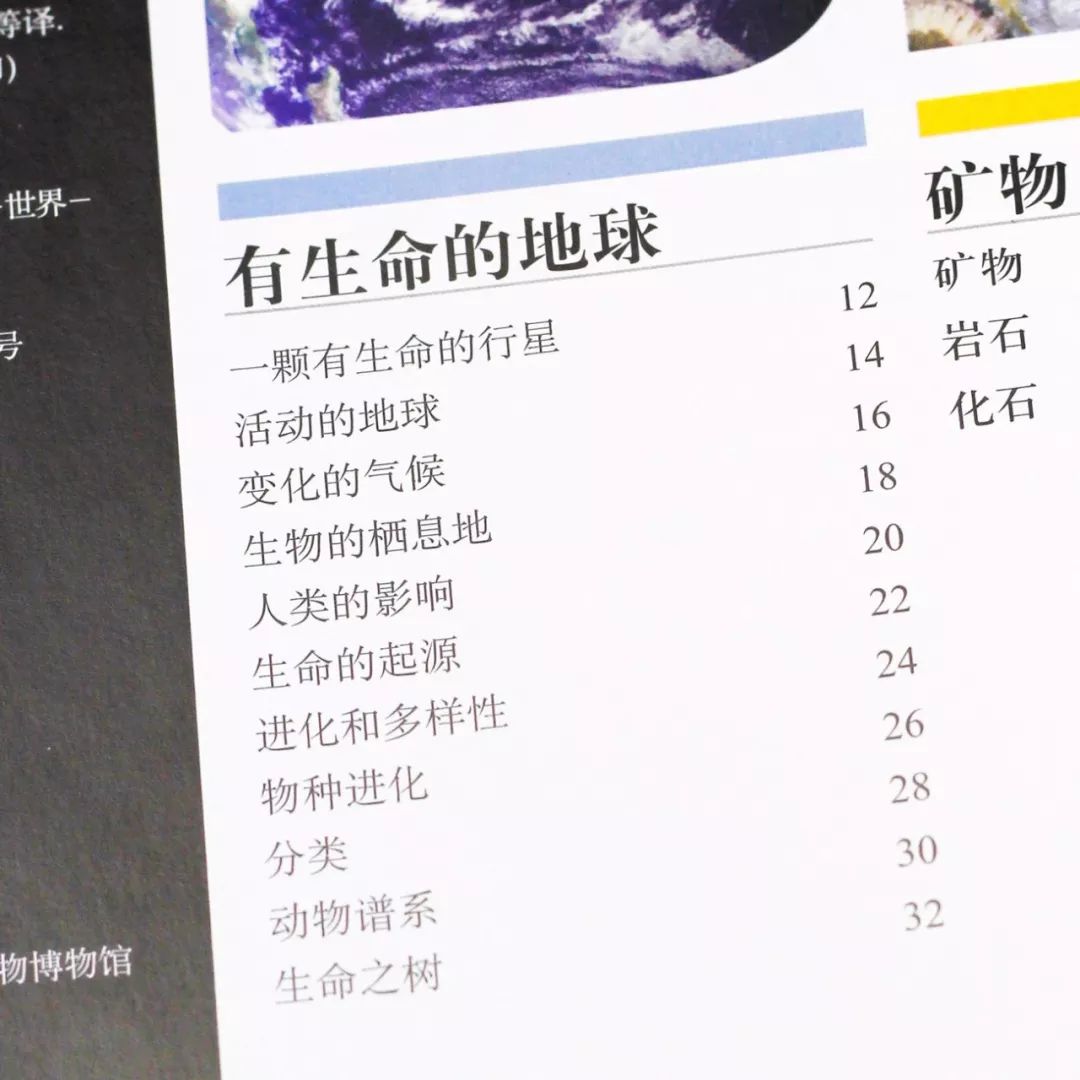 在第一章节《有生命的地球》里面不仅包括地震、风化、侵蚀等地球活动、气候的变化、人类的影响,还有物种起源、动物谱系、生命之树等,将地球的起源、变化系统地娓娓道来。。。