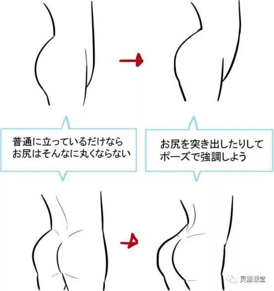 总结以上的点就是,女性的屁股是椭圆的,男性的屁股要画出肌肉构成的感觉,屁股的位置在胯下,通过采取动作来强调臀部的圆圆。