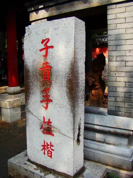 每年农历8月27日前后,也就是大祭孔子的时间,无论是白天还是黑夜,也不管是早晨或者中午,在石碑的表面,总是湿漉漉地挂满了一串串水珠,酷似一个极度伤心的人正在流泪。尤其在石碑中部竖刻“子贡手植楷”的碑文上,水珠最多;而“子贡”二字处,“泪流”又为最。