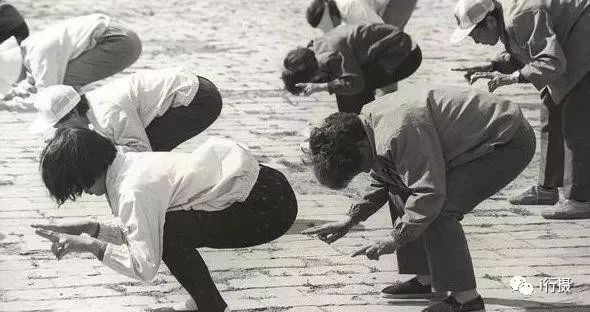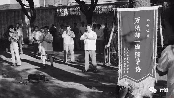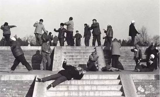 80年代,气功一度风靡一时。在北京、上海这样的大城市,气功迷们就像现在的广场舞大妈们一样,占据了公园的角落。图为公园内练气功的人群,每人摆出不同的姿势。