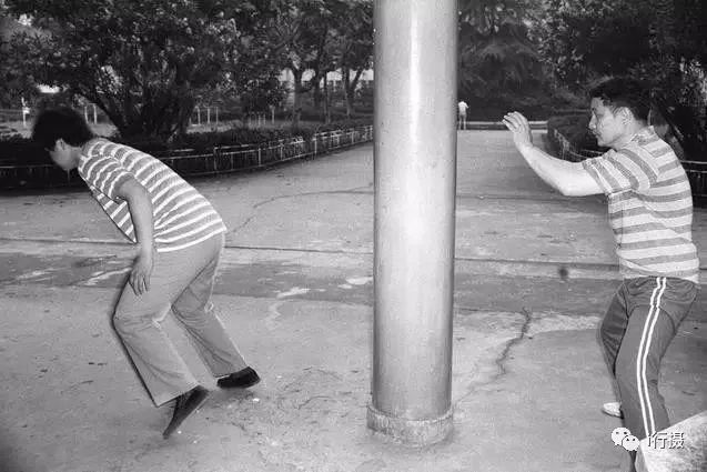 大师严新表示,他可以发功,拦截原子弹。这个说法让许多人兴奋异常。普通老百姓不过将其当成一种精神寄托。图为男子练功只需要一个月,就可以隔柱推人。