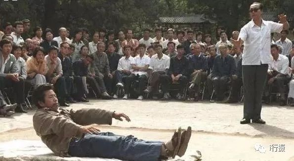 在80年代,有的人认为气功是最高的科学,是高科技中的高科技。由于实在太火,提出反对意见是不合时宜的。图为在一次气功大师的课上,学员们“一”字排开,用气功打通别人的经脉。
