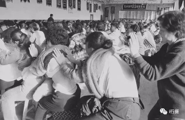 如果有“气功大师”驾临,作气功报告,那每场也有上万人听讲,场面颇为壮观。图为在一次宣讲会上,人们集体练气功。