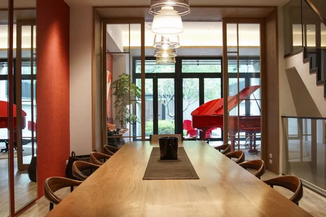 从大门口进来是水池,当时他一眼就看上了这里。走进一楼,映入眼帘的是红色,有演奏厅、厨房和后院。
