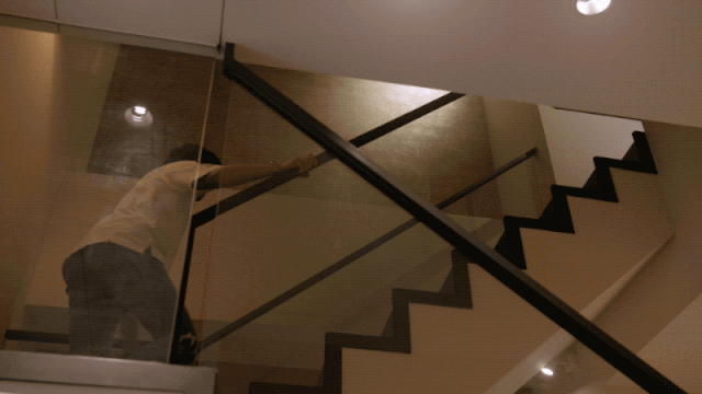 他说进门的沙发其实没有人坐,而且进门就瘫在上面会显得很“懒”。他不喝酒,但是朋友来了会喝,所以还是在餐桌上聊天方面,所以一楼是没设计客厅空间的。