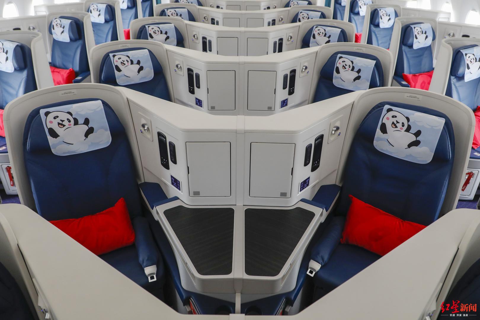 此次川航A350飞机首飞伊斯坦布尔,川航特别打造了熊猫主题航班——从座椅的头片、腰枕再到空乘的围裙,均围绕熊猫形象进行设计,餐盒、纸杯、清洁袋等机上服务用品也全部饰以熊猫元素,机上还配备了熊猫造型的米饭、点心和拉花咖啡等特色餐食,为旅客带来欢萌轻松的空中旅程。