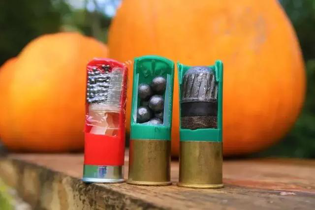 上边从左到右是鸟弹(Birdshot),鹿弹(Buckshot),独头弹(Slug)