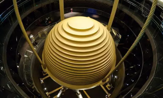 阻尼器的原理是在大楼侧面受力时(台风等)阻尼器也会以相应的频率摆动造成相反的作用力,抵消部分大楼的压力。