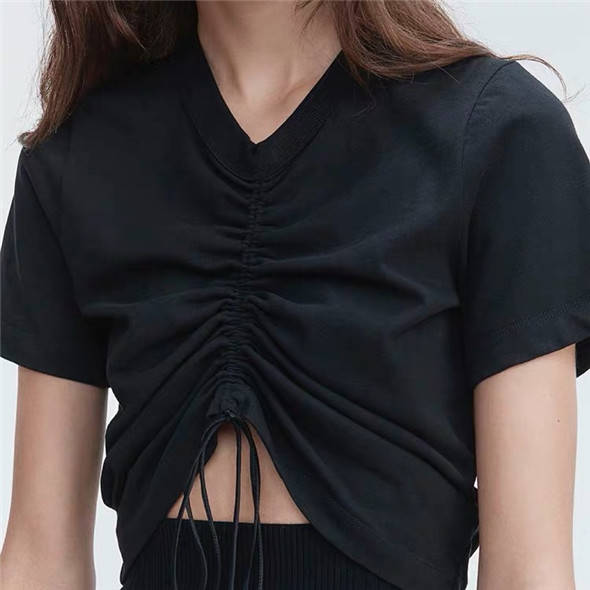 这款抽绳短袖露脐装,属于比较酷酷的风格,黑色经典百搭,完全不会出错,抽绳的好处就是可以自己控制露脐的程度,真的是很贴心啦。