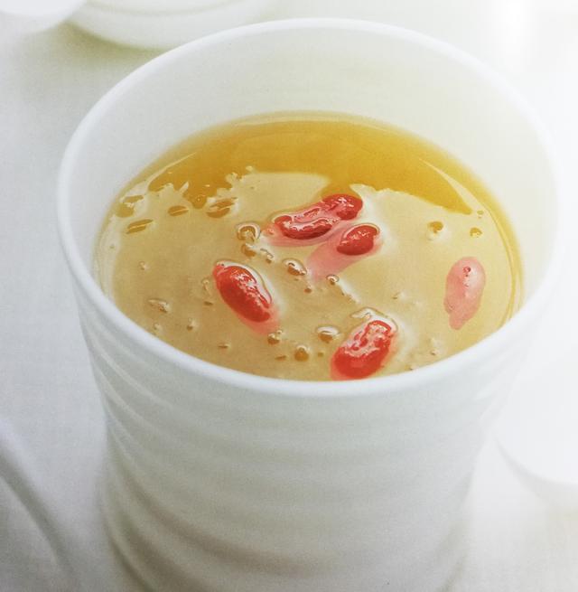 【食材】燕窝6克,黄冰糖50克,枸杞2克,温水3000毫升