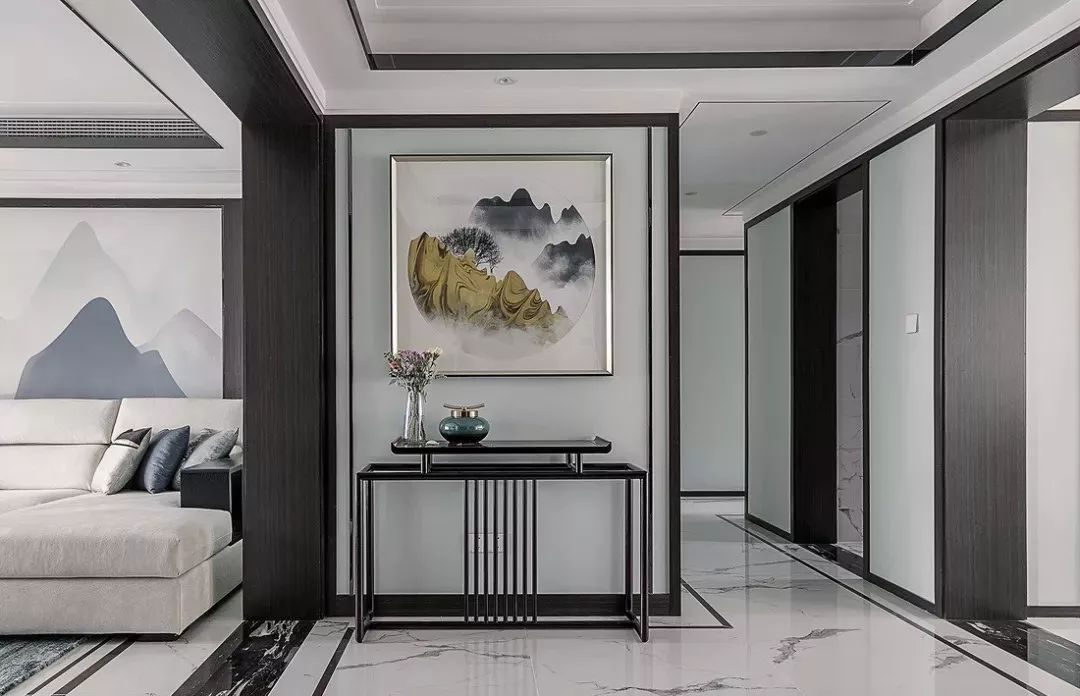 新中式玄关设计从没让我失望过,方框圆画,美在方圆之中。