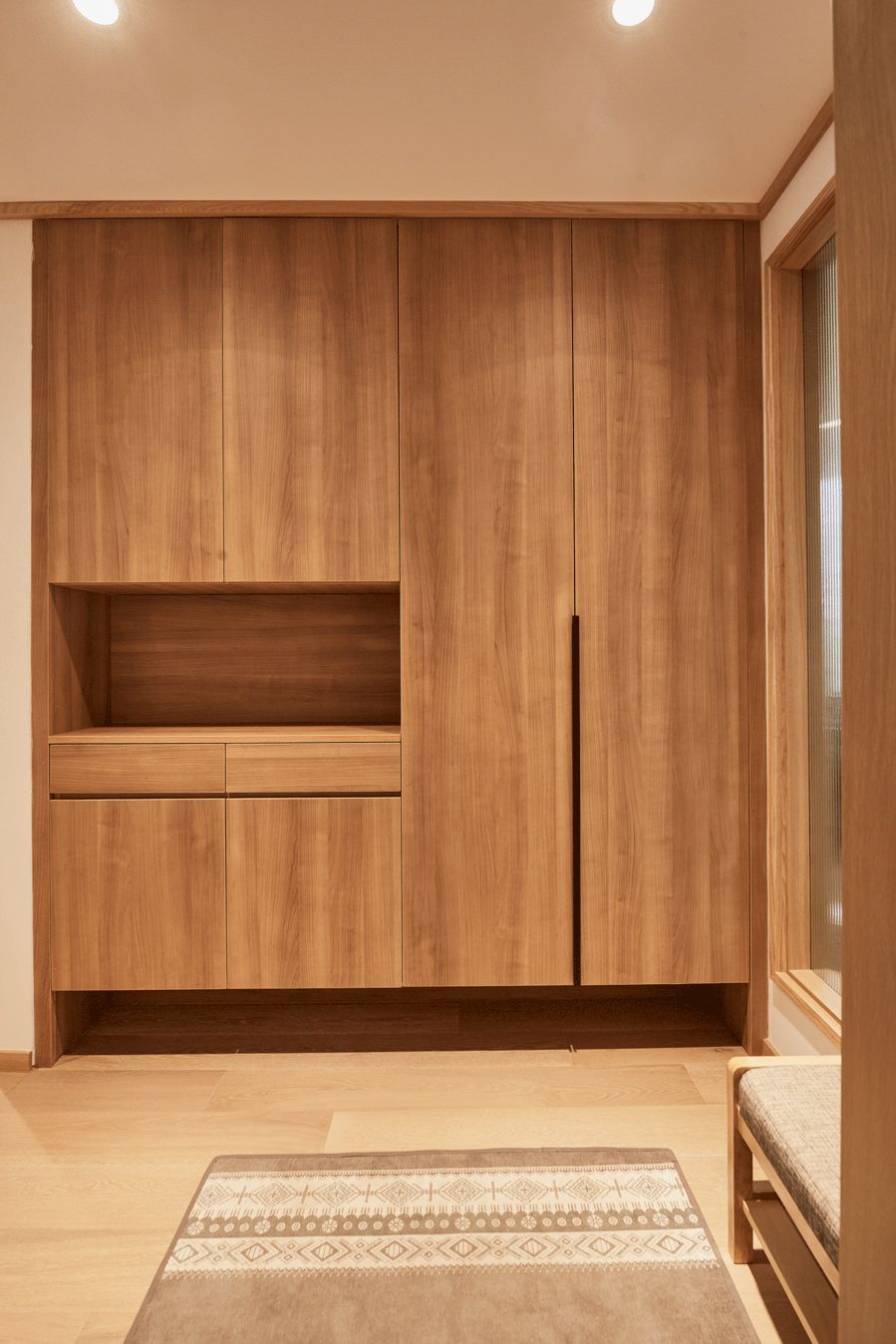 大门一开,便是入户的玄关柜。玄关是根据原本餐厅的地界而设置的。