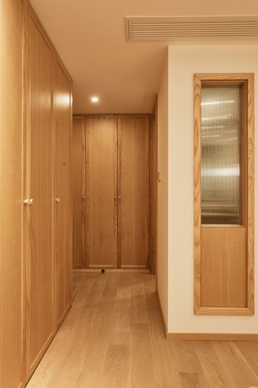 卧室门后,主卫入口,则将多余空间变为隔夜衣柜。