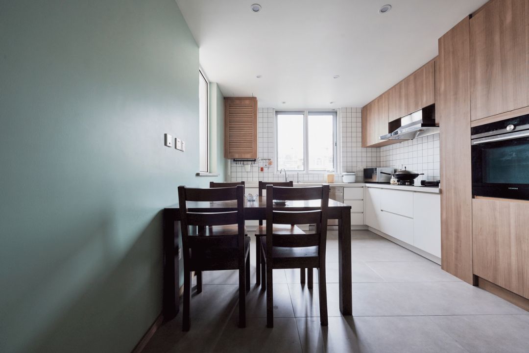 厨房与餐厅合并,形成20㎡的超大空间,不管是女主人大显厨艺,或者呼朋友引学生一起下厨都绰绰有余。