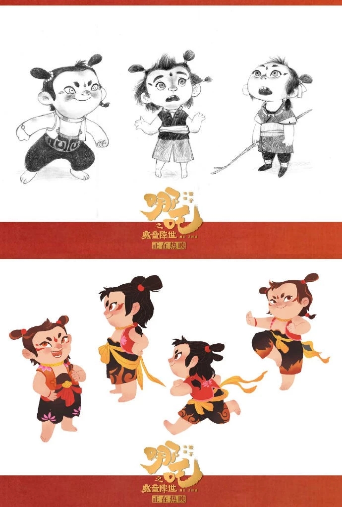 可以看出,最初的形象实际上有点类似于哪吒传奇,基本上是小哪吒的高匹配版本,但为了完全区别于旧版本,纳扎最终被设计成这样。在看过这些初稿后,仍然是吐槽饺子导演的人们估计有被打脸的感觉。