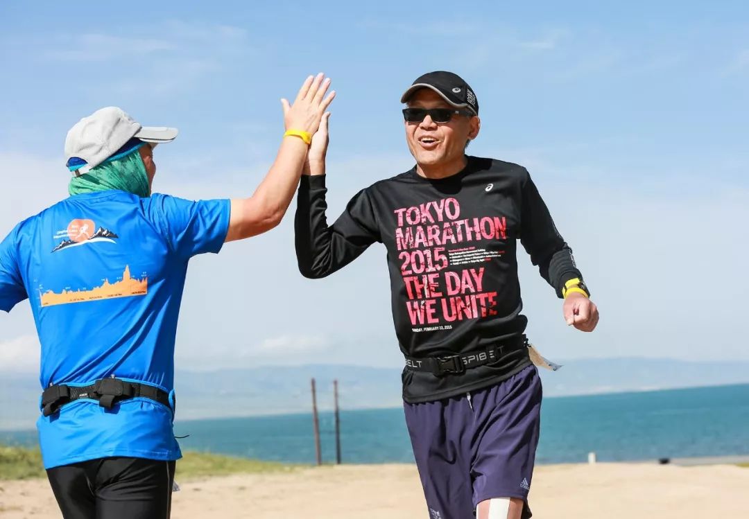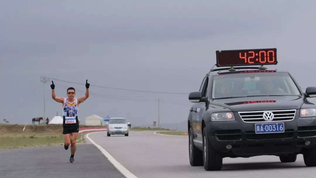 倪玉生抵达2019环青海湖超级马拉松测试赛的终点海神亭。18小时42分48秒,210公里,平均配速5分20秒,全马平均3小时44分。他凭借强大的实力、坚韧的意志,排除万难,最终成为这一全球唯一的高海拔连续5天5场全马多日赛冠军。