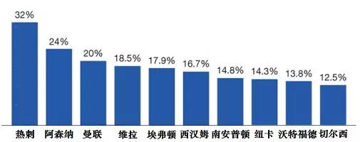 而好货囤了一卡车的豪门,这个数据也不咋地。本赛季切尔西的阵容中有83.3%的球员来自其他国家,外来人口指数在整个欧洲足坛可以排到第3位。而以奇克为代表的本队青训球员所占比重更是只有12.5%,并且鲜有上场机会。