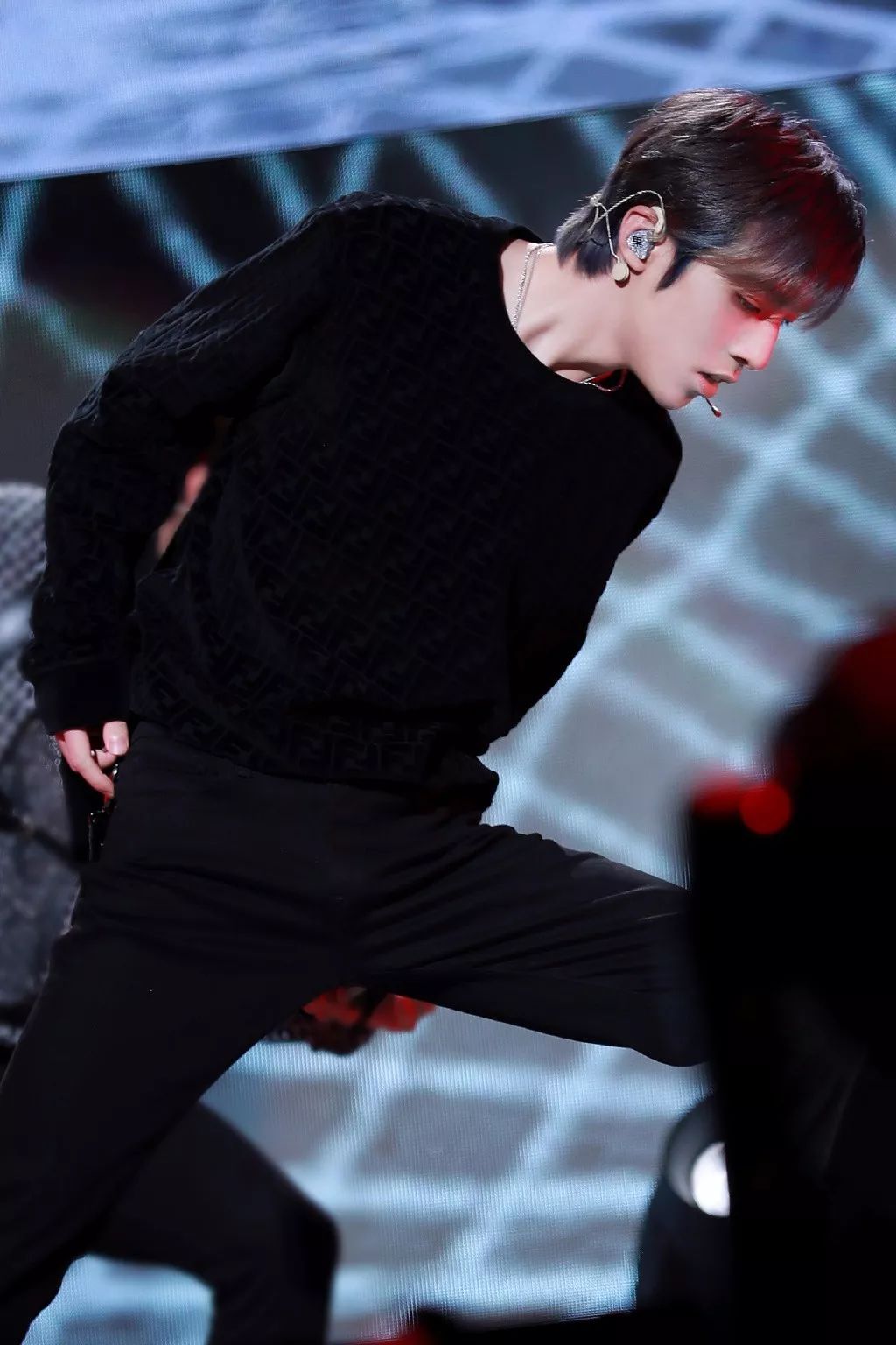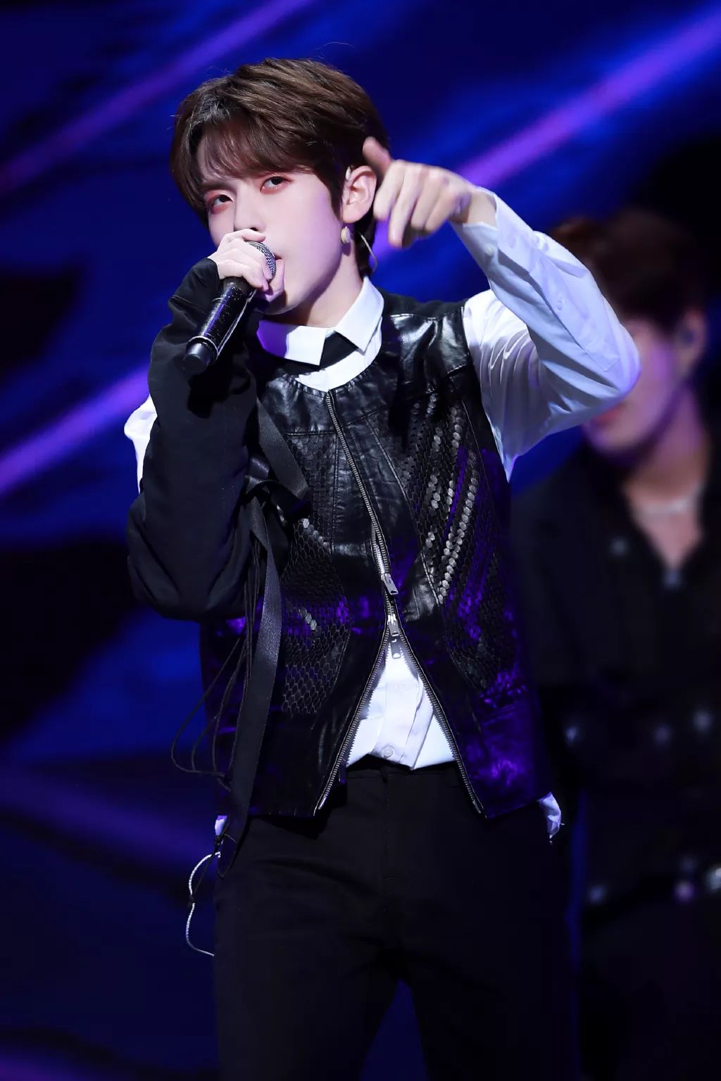 C位出道的李汶翰,在当晚身穿一袭深色系的格纹衬衫,内搭荧光黑色T恤作为打底,一身穿搭组合虽然属于深色调,可看起来却一点也不会显得沉闷和呆板。从某个角度看,李汶翰的脸型轮廓也很是清晰分明,简直帅得没边有没有~