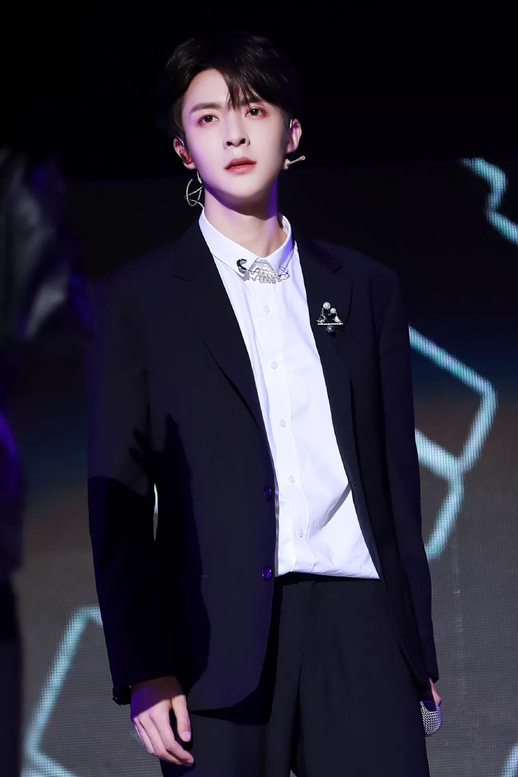 第三名的姚明明,初次看到他时我便忍不住发出了惊叹:这位小哥哥的眼妆画得好好看啊~当然了,姚明明何止是妆容耐看,这张俊脸以及潇洒干练的服装也是十分抢眼好不好~只见他身穿黑色西装搭配星星印花图案打底衫,一时间竟让我有些分不清楚到底是灯光在闪还是衣服在闪了……