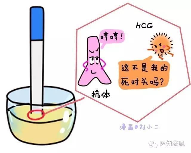 验孕试纸中装有HCG抗体,当验孕试纸浸入尿液中