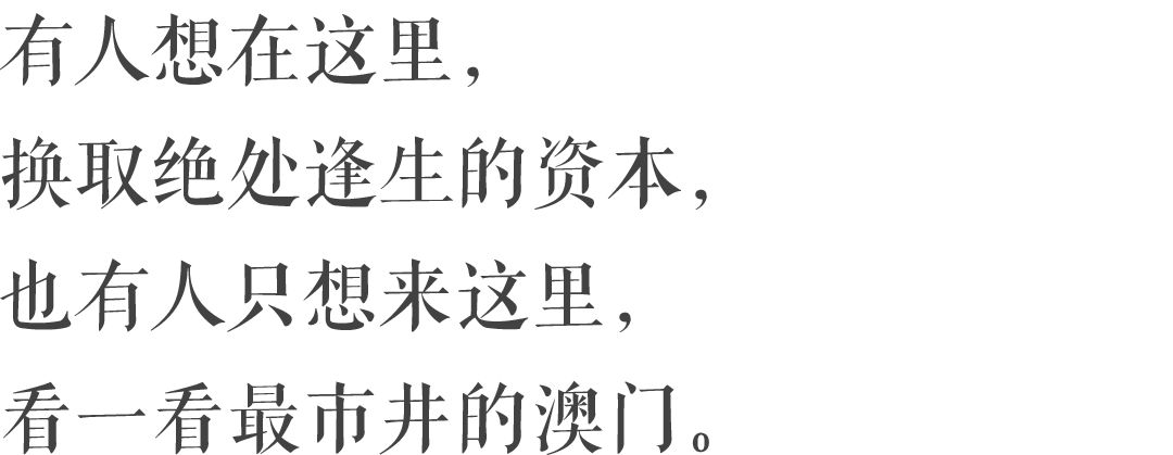 那么,在一往无前拥抱世界的过程中,如何才是更加独一无二、不可复制的澳门呢?无疑,除了博彩支撑下的富甲一方,澳门更需要告诉世人的,是它在辉煌与喧嚣之外的、城市底蕴里始终存藏着的市井冷暖。