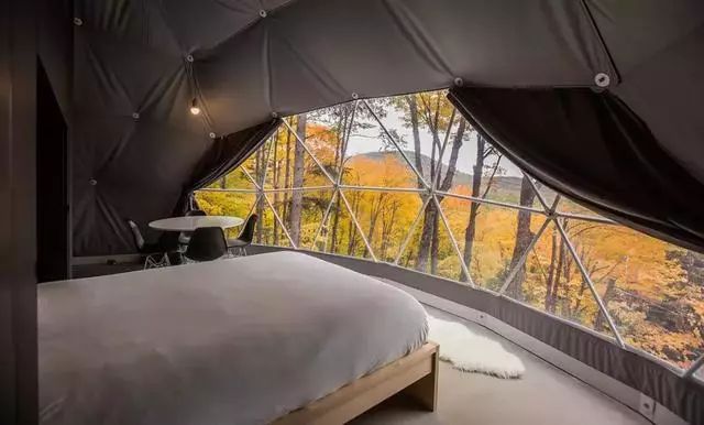 这个豪华生态度假村由三个灰色的露营圆顶组成,从魁北克的山坡森林中向外望去,就像一双圆圆的眼睛。场地位于小里维埃里-圣弗朗索瓦的山上,靠近Le Massif de Charlevoix滑雪场。穹顶是由domes Charlevoix开发的可持续旅游度假区的第一阶段。