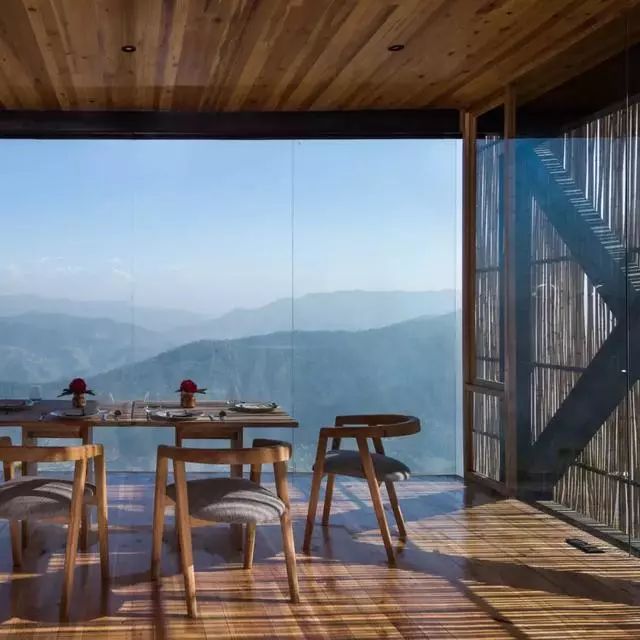 斯里兰卡的Zowa建筑事务所使用竹条覆盖了印度北阿坎德邦的这家精品酒店的玻璃幕墙,悬挑出来的酒店享有喜马拉雅山的最佳景观。