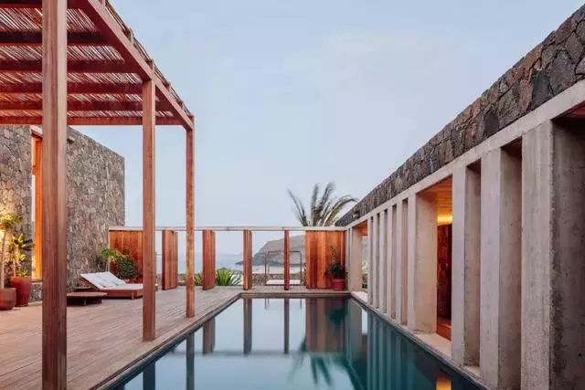 设计师解释说:“佛得角群岛主要是一个奇特的月球景观,在肉眼所能看到的地方,到处都是火山口、坑洼和岩石。它迷人的棕色、赭色、红色和深蓝色的大西洋形成了鲜明的对比。尊重周围的景观是至关重要的。”